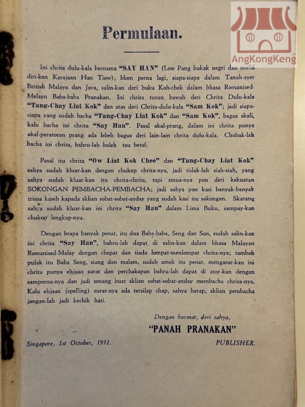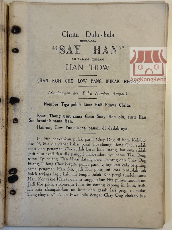 西漢 漢高祖劉邦開邦建國 Say Han - Han Koh Cho Low Pang Bukak Negri 1931年出版 發行者Published by:Wan Boon Seng
